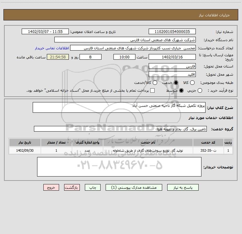 شرح کلی نیاز: پروژه تکمیل شبکه گاز ناحیه صنعتی حسن آباد