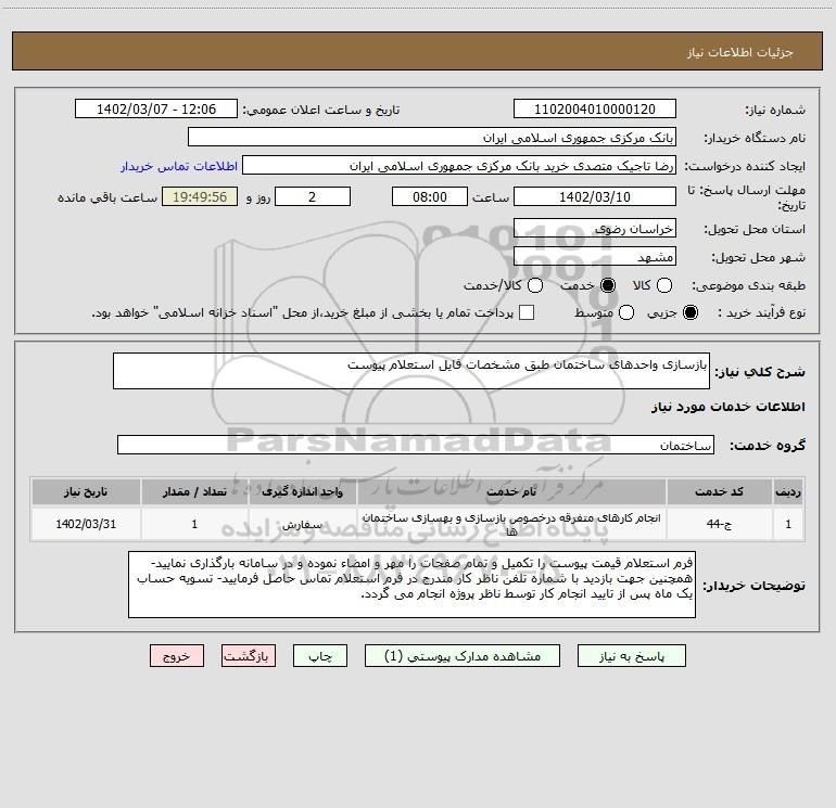 استعلام بازسازی واحدهای ساختمان طبق مشخصات فایل استعلام پیوست, استعلام بازسازی واحدهای ساختمان طبق مشخصات فایل استعلام پیوست