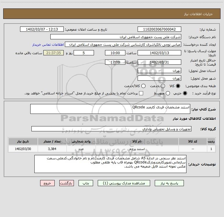 نام دستگاه خریدار:شرکت ملی پست جمهوری اسلامی ایران