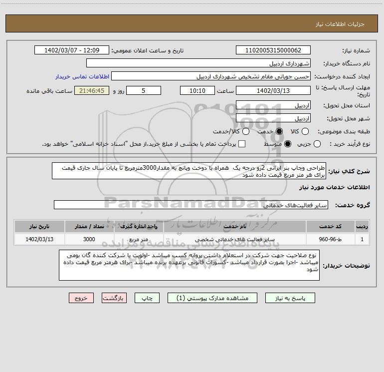 شرح کلی نیاز: طراحی وچاپ بنر ایرانی 2رو درجه یک همراه با دوخت وپانچ به مقدار3000مترمربع تا پایان سال جاری قیمت برای هر متر مربع قیمت داده شود