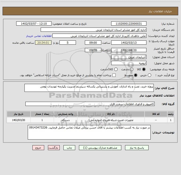نام دستگاه خریدار:اداره کل امور عشایر استان اذربایجان غربی