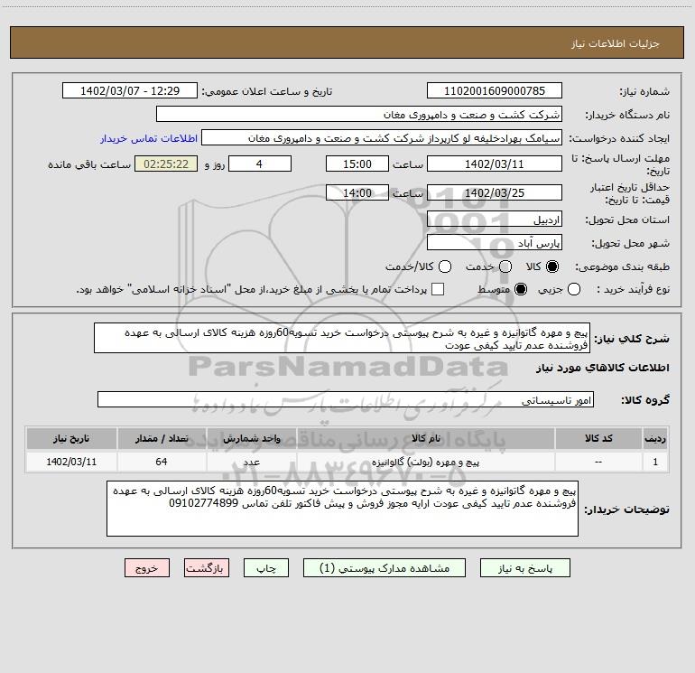 نام دستگاه خریدار:شرکت کشت و صنعت و دامپروری مغان