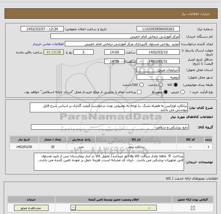 | 1 | -- | برانکارد بیمار | عدد | 20 | 1402/03/30 |