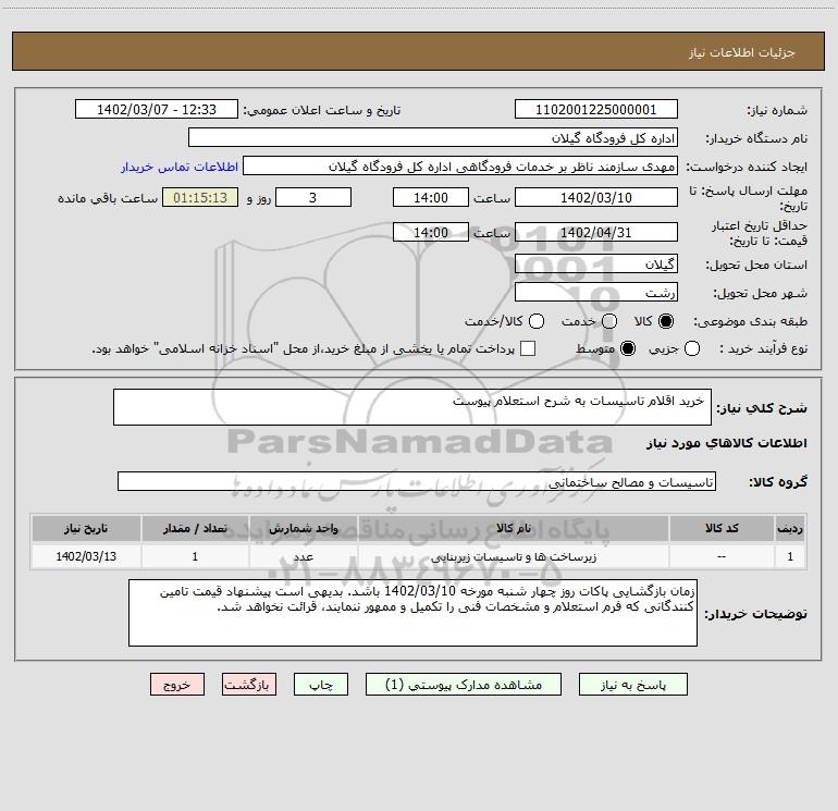 شرح کلی نیاز: خرید اقلام تاسیسات به شرح استعلام پیوست