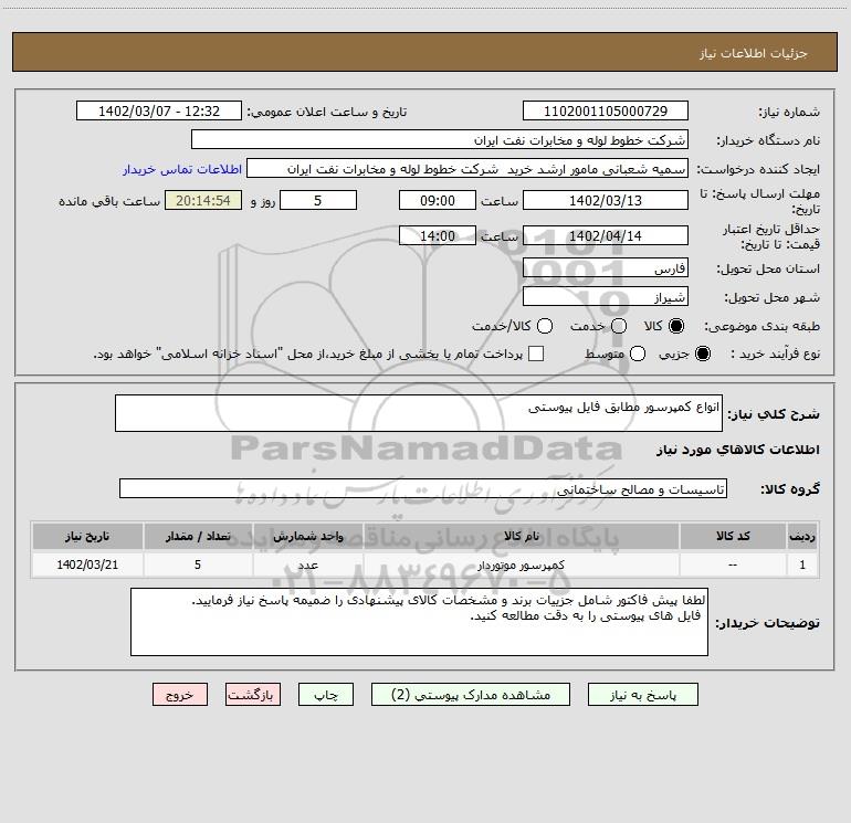 شرح کلی نیاز: انواع کمپرسور مطابق فایل پیوستی