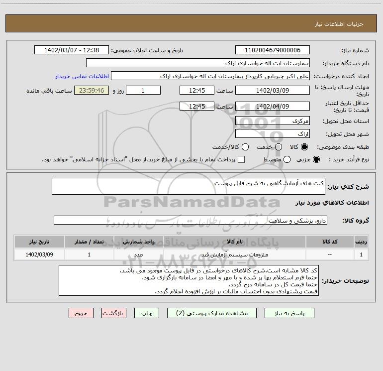 استعلام کیت های آزمایشگاهی به شرح فایل پیوست, استعلام کیت های آزمایشگاهی به شرح فایل پیوست