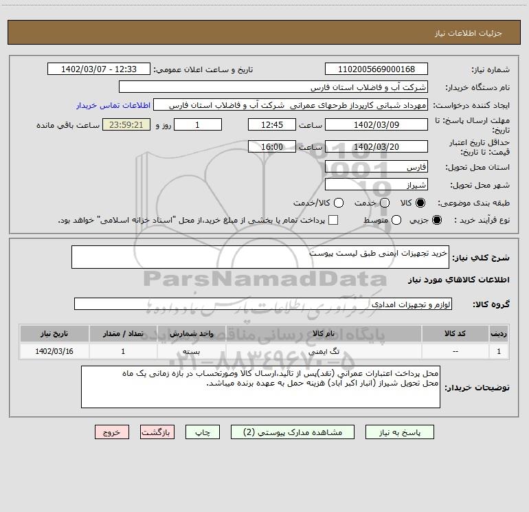 نام دستگاه خریدار:شرکت آب و فاضلاب استان فارس