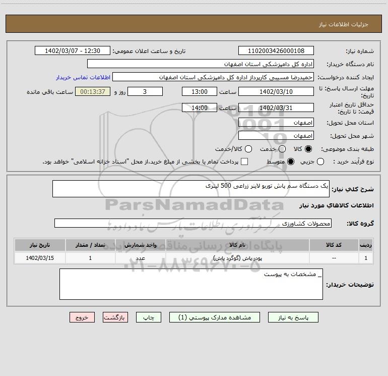 نام دستگاه خریدار:اداره کل دامپزشکی استان اصفهان