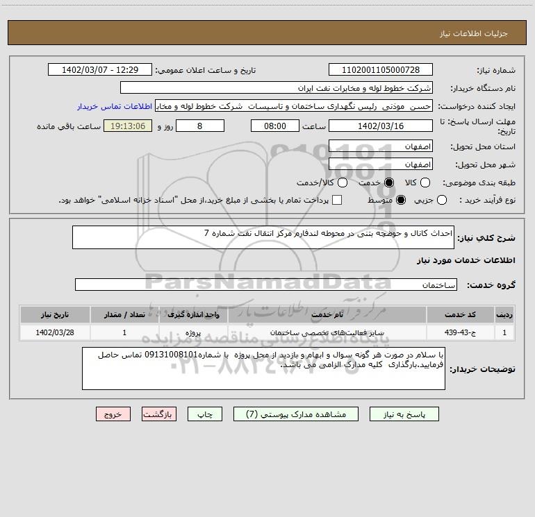 شرح کلی نیاز: احداث کانال و حوضچه بتنی در محوطه لندفارم مرکز انتقال نفت شماره 7