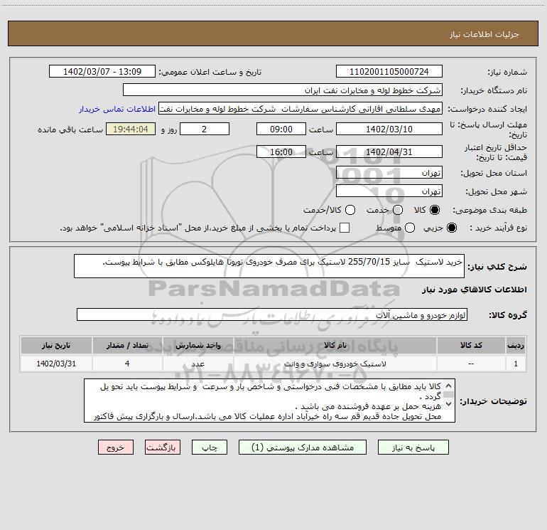 نام دستگاه خریدار:شرکت خطوط لوله و مخابرات نفت ایران