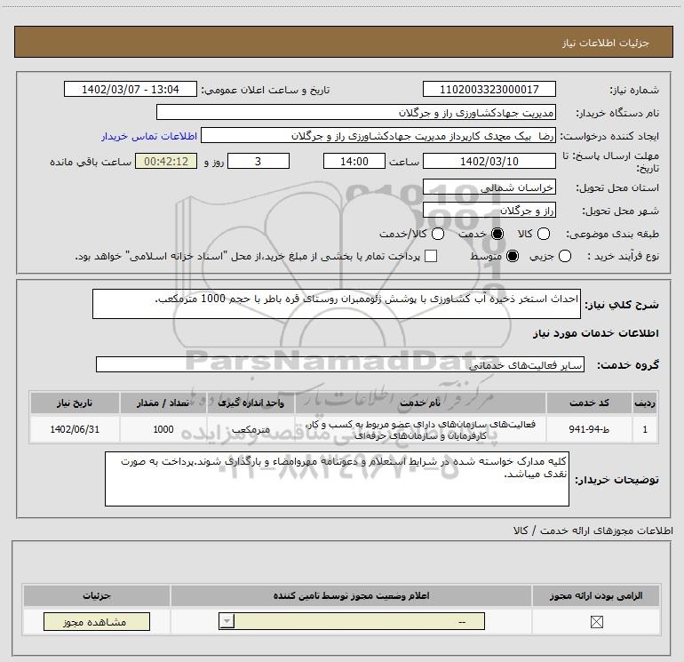 نام دستگاه خریدار:مدیریت جهادکشاورزی راز و جرگلان