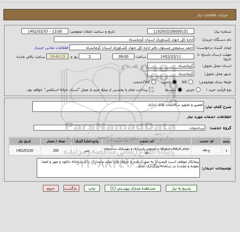 شرح کلی نیاز: تعمییر و تجهیز ساختمان های اداری