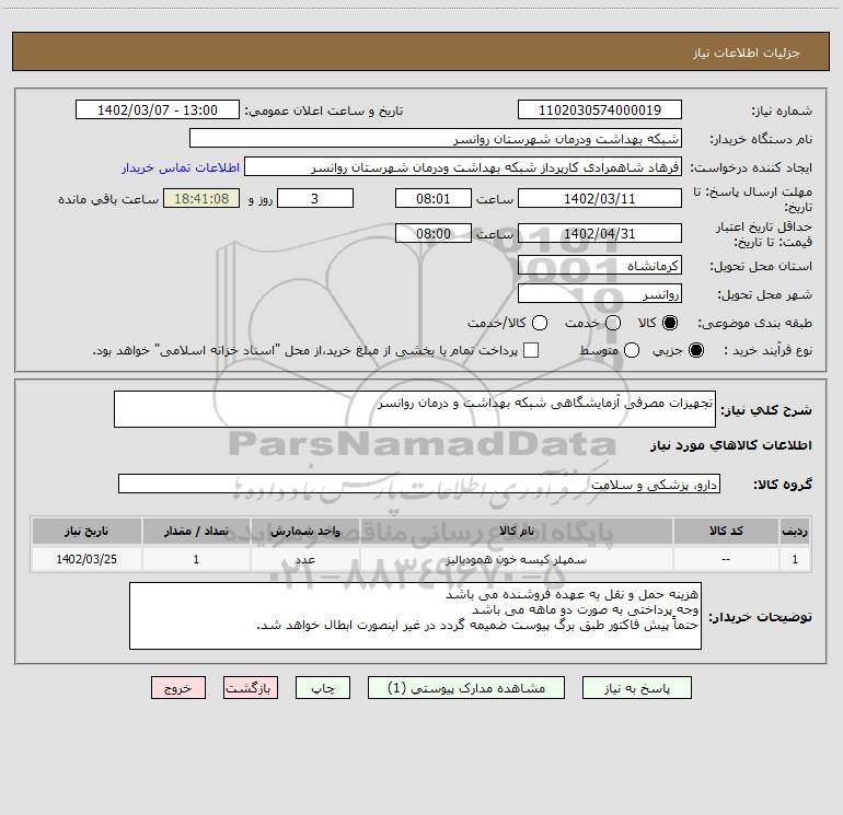 نام دستگاه خریدار:شبکه بهداشت ودرمان شهرستان روانسر