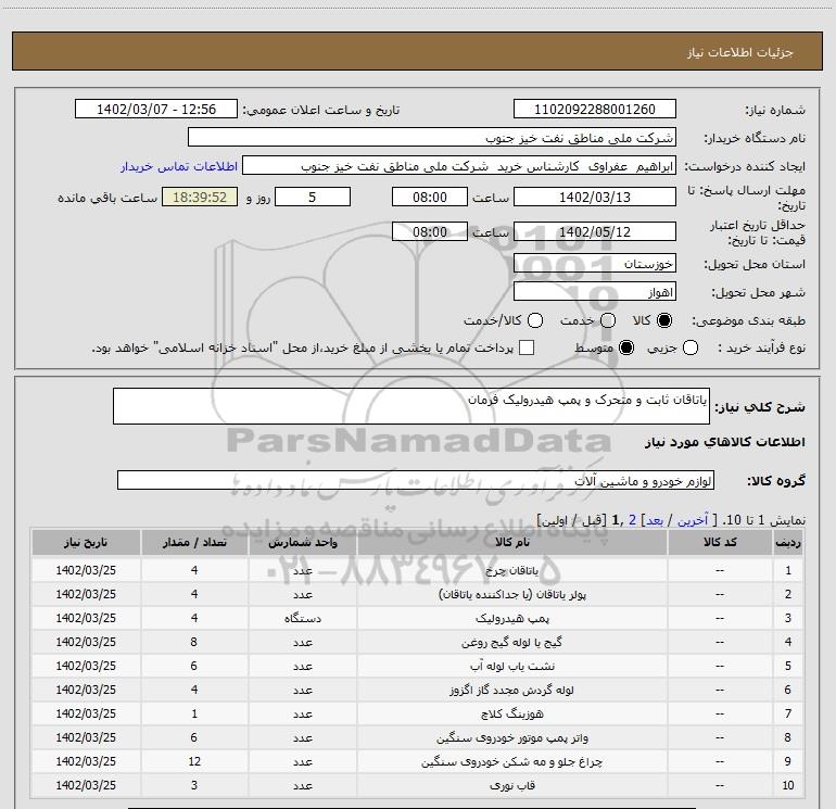 نام دستگاه خریدار:شرکت ملی مناطق نفت خیز جنوب