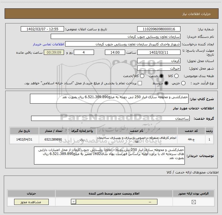نام دستگاه خریدار:سازمان تعاون روستایی جنوب کرمان