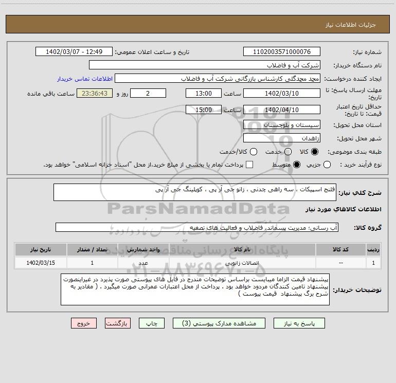 نام دستگاه خریدار:شرکت آب و فاضلاب