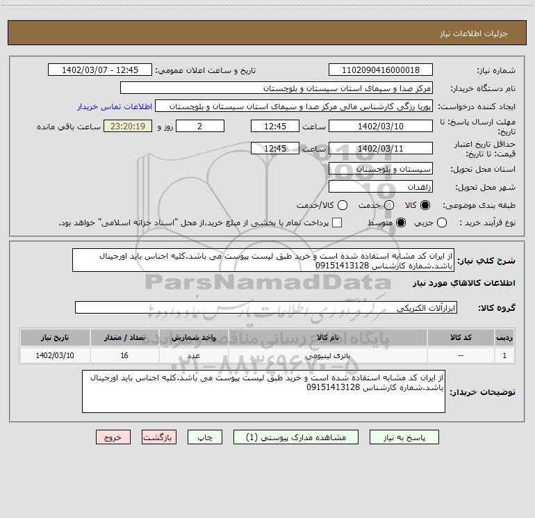 نام دستگاه خریدار:مرکز صدا و سیمای استان سیستان و بلوچستان