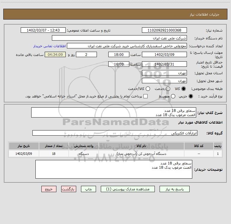نام دستگاه خریدار:شرکت ملی نفت ایران