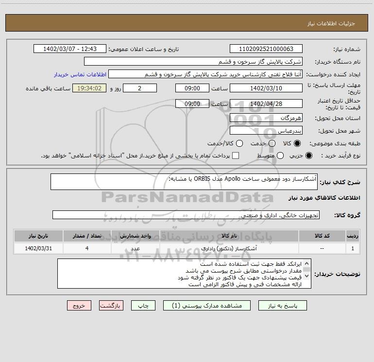 نام دستگاه خریدار:شرکت پالایش گاز سرخون و قشم