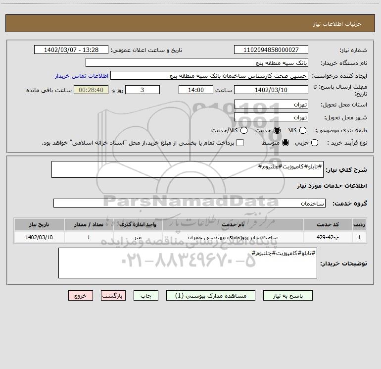 شرح کلی نیاز: #تابلو#کامپوزیت#چلنیوم#