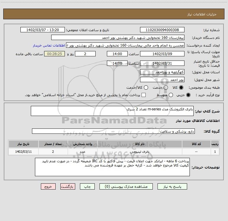 نام دستگاه خریدار:بیمارستان 160 تختخوابی شهید دکتر بهشتی بویر احمد