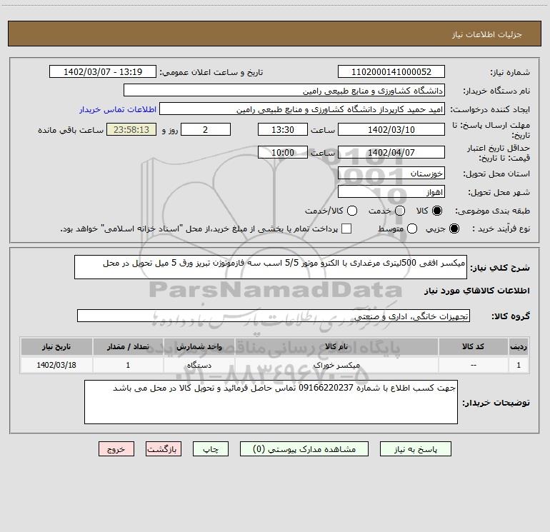 نام دستگاه خریدار:دانشگاه کشاورزی و منابع طبیعی رامین