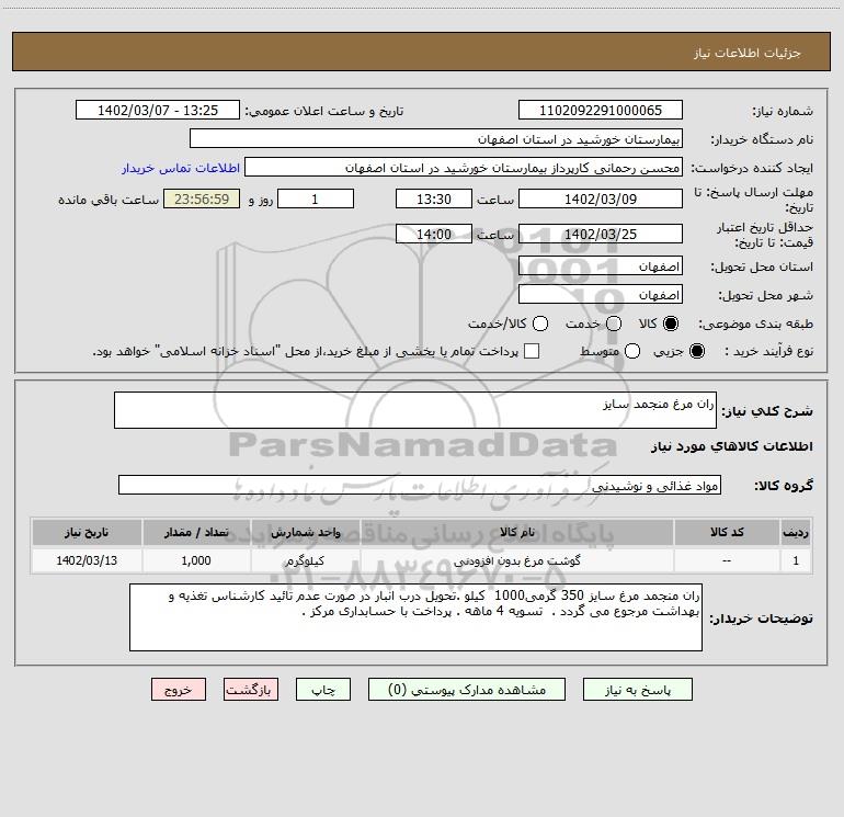 شرح کلی نیاز: ران مرغ منجمد سایز