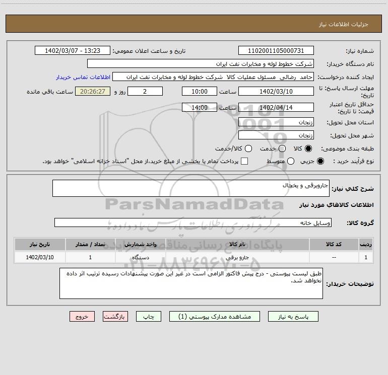نام دستگاه خریدار:شرکت خطوط لوله و مخابرات نفت ایران