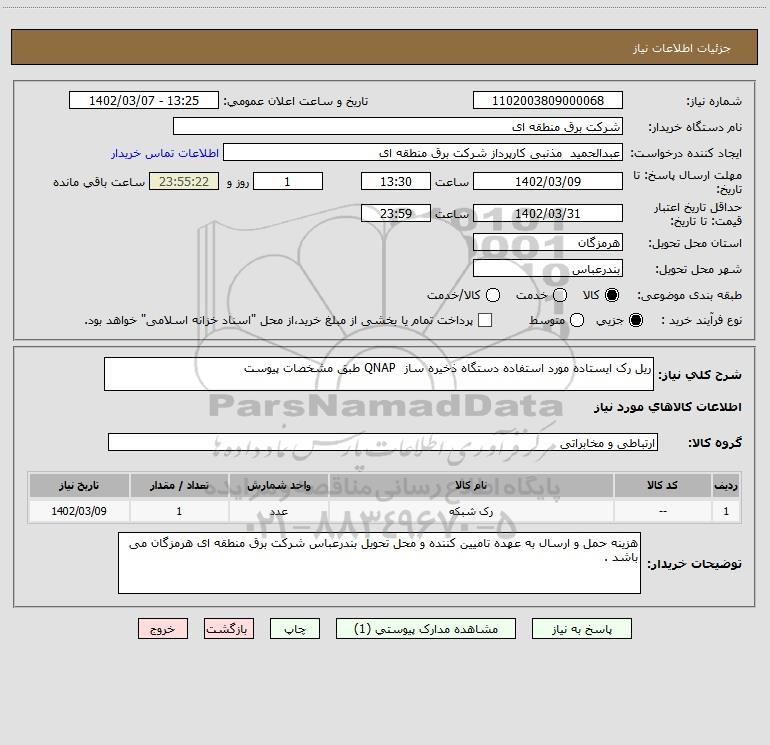 توضیحات خریدار:هزینه حمل و ارسال به عهده تامیین کننده و محل تحویل بندرعباس شرکت برق منطقه ای هرمزگان می باشد .