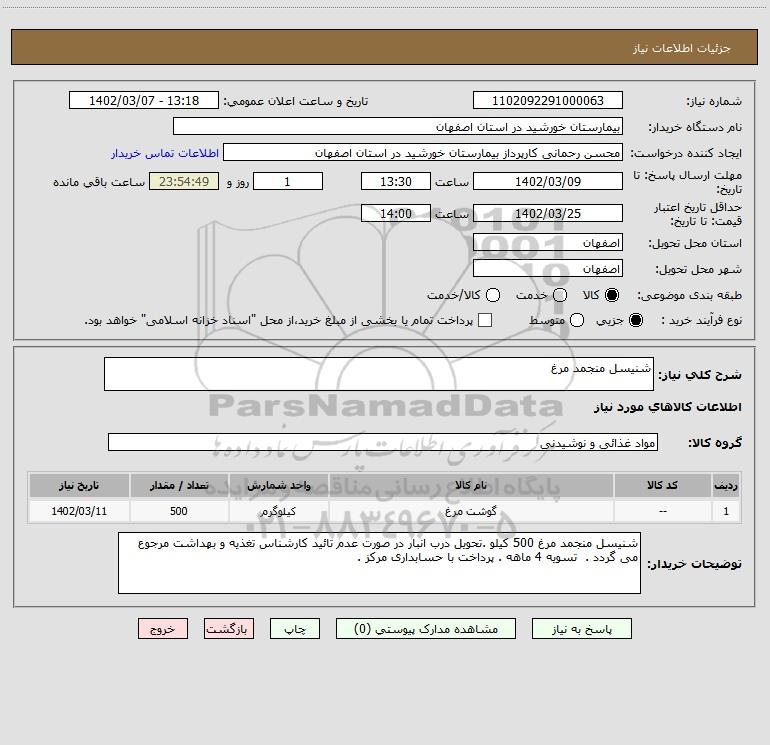 شرح کلی نیاز: شنیسل منجمد مرغ