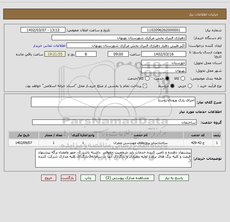 شرح کلی نیاز: اجرای پارک ورودی روستا