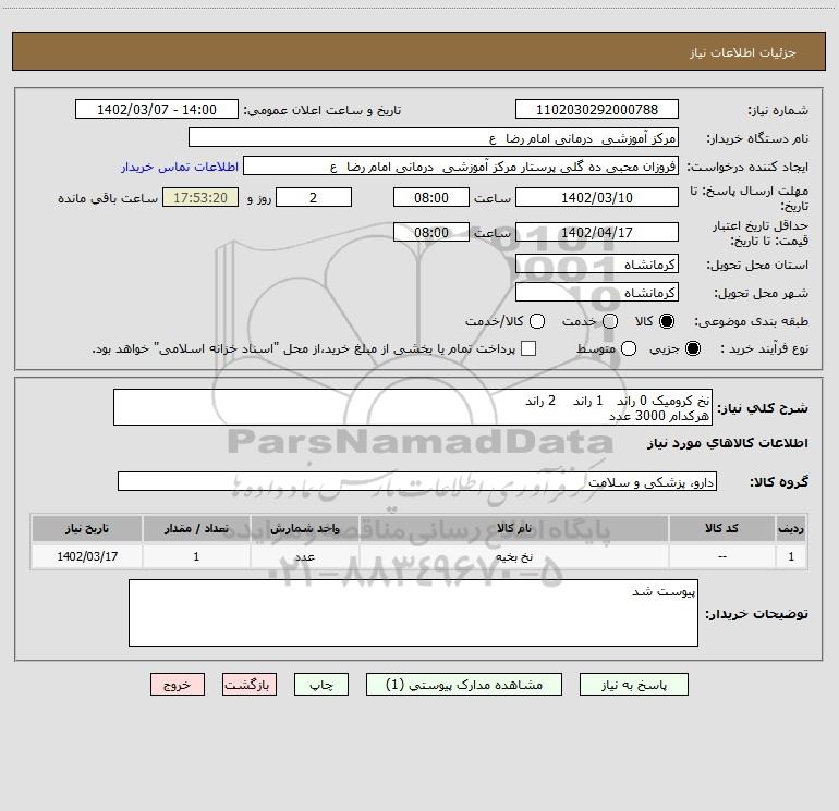 نام دستگاه خریدار:مرکز آموزشی درمانی امام رضا ع