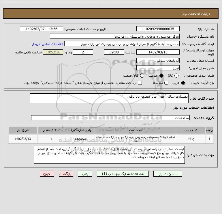 نام دستگاه خریدار:مرکز اموزشی و درمانی روانپزشکی رازی تبریز
