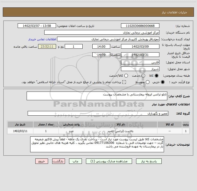 نام دستگاه خریدار:مرکز اموزشی درمانی نمازی