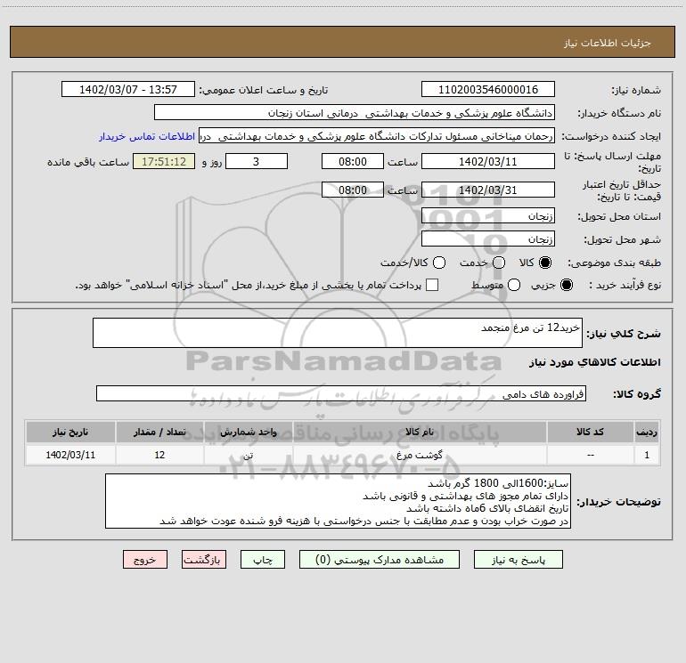 شرح کلی نیاز: خرید12 تن مرغ منجمد