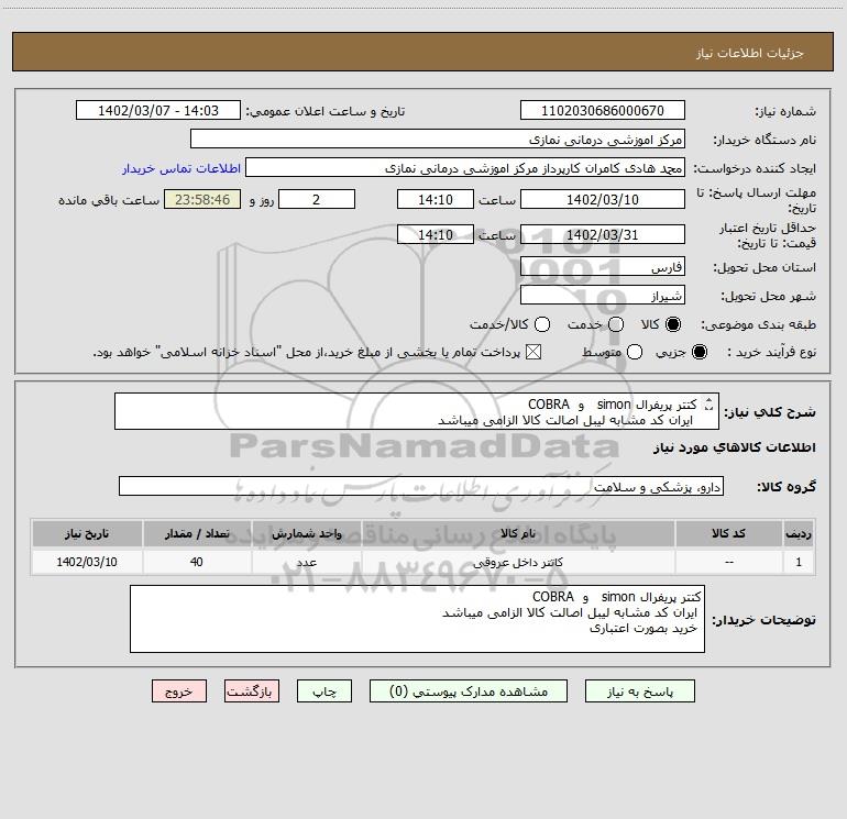 استعلام کتتر پریفرال simon و COBRA ایران کد مشابه لیبل اصالت کالا الزامی میباشد خرید بصورت اعتباری ؟