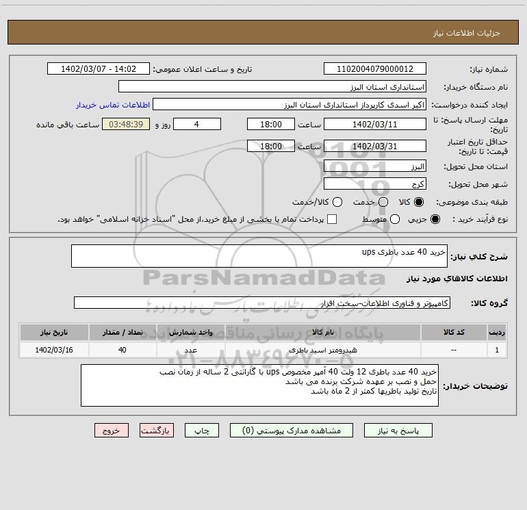 شرح کلی نیاز: خرید 40 عدد باطری ups