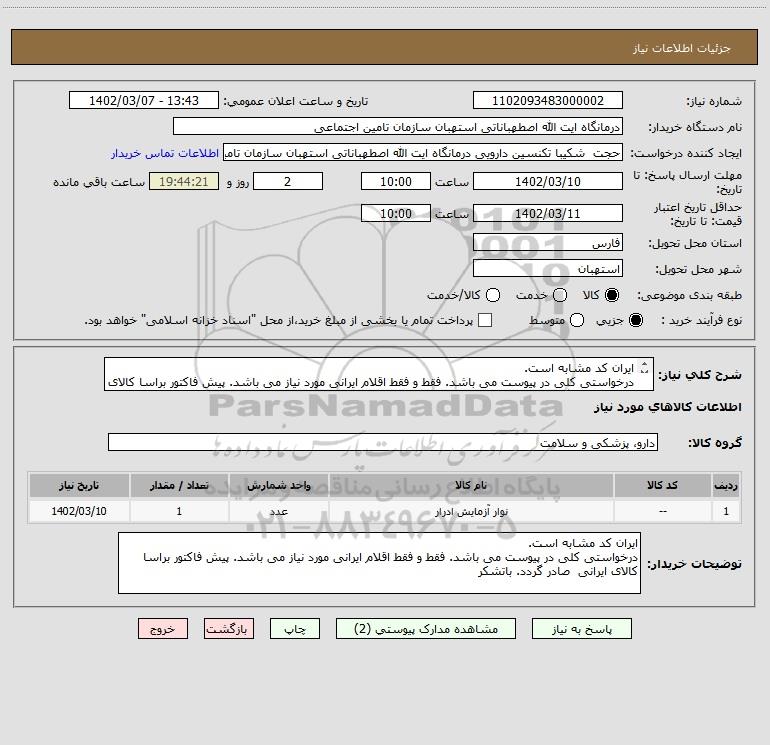 استعلام ایران کد مشابه است. درخواستی کلی در پیوست می باشد. فقط و فقط اقلام ایرانی مورد نیاز می باشد. پیش فاکتور براسا کالای ایرانی صادر گردد. باتشکر, استعلام ایران کد مشابه است. درخواستی کلی در پیوست می باشد. فقط و فقط اقلام ایرانی مورد نیاز می باشد. پیش فاکتور براسا کالای ایرانی صادر گردد. باتشکر
