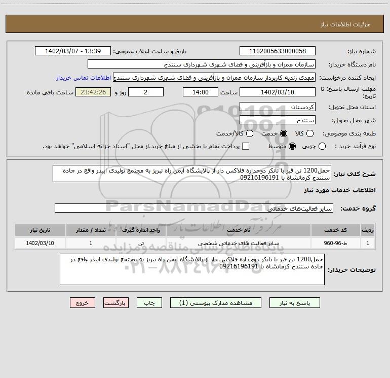 نام دستگاه خریدار:سازمان عمران و بازآفرینی و فضای شهری شهرداری سنندج