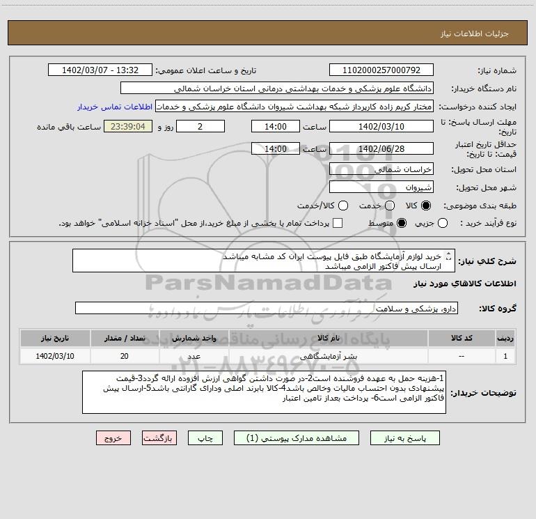 نام دستگاه خریدار:دانشگاه علوم پزشکی و خدمات بهداشتی درمانی استان خراسان شمالی
