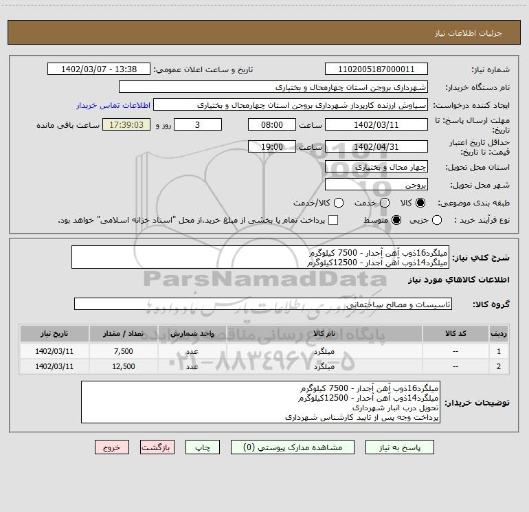 | 2 | -- | میلگرد | عدد | 12,500 | 1402/03/11 |