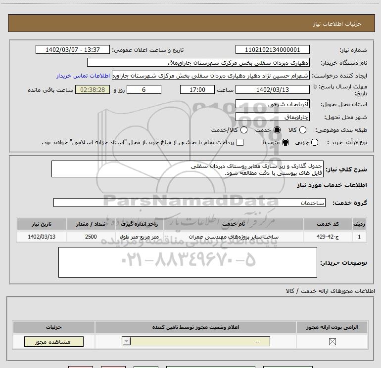 شرح کلی نیاز: جدول گذاری و زیر سازی معابر روستای دبردان سفلی