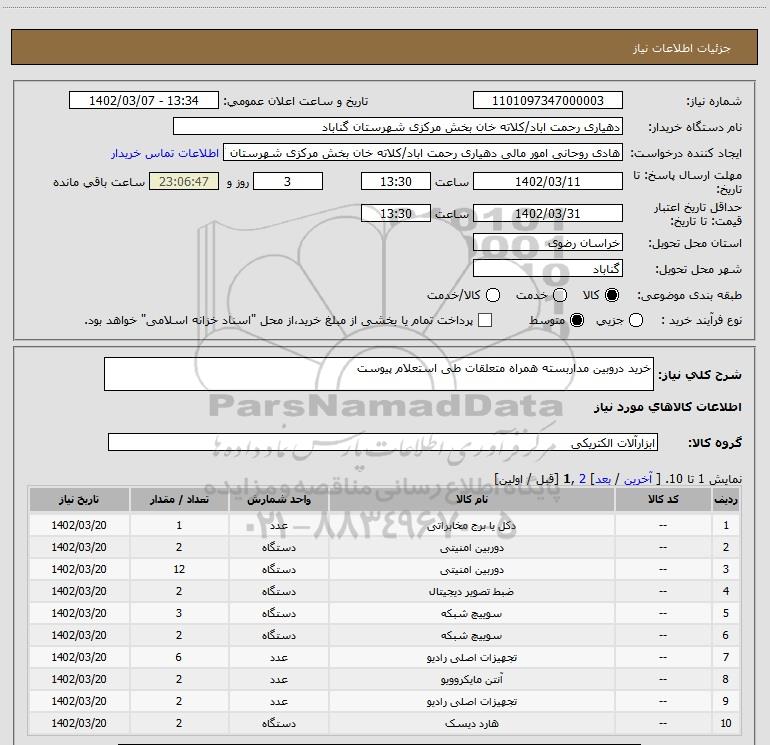 شرح کلی نیاز: خرید دروبین مداربسته همراه متعلقات طی استعلام پیوست