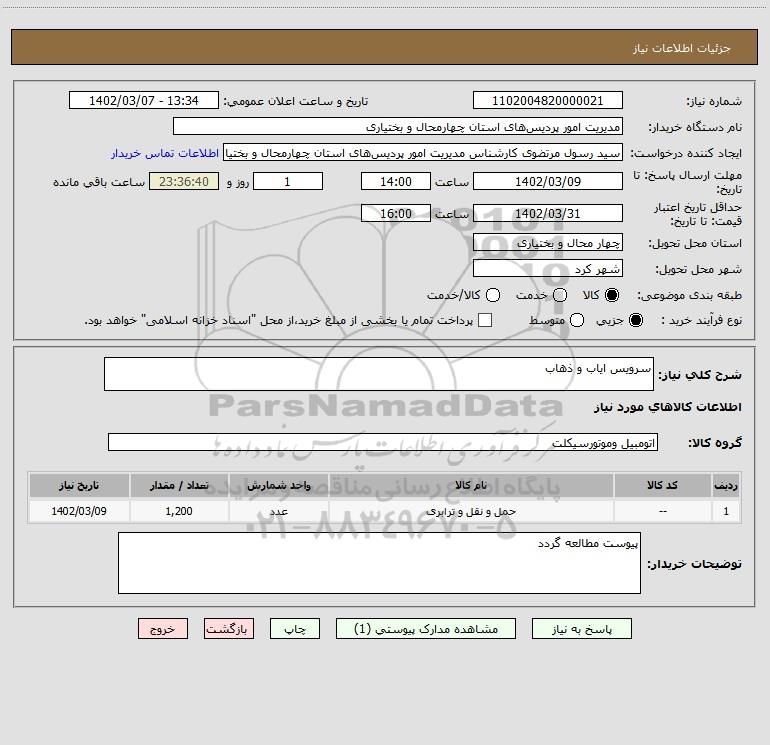 شرح کلی نیاز: سرویس ایاب و ذهاب