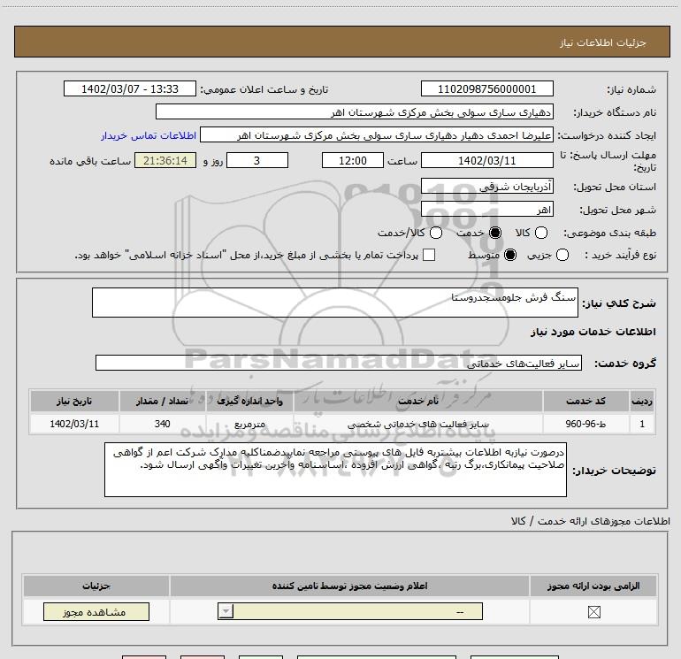 شرح کلی نیاز: سنگ فرش جلومسجدروستا