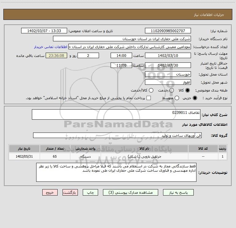 نام دستگاه خریدار:شرکت ملی حفاری ایران در استان خوزستان