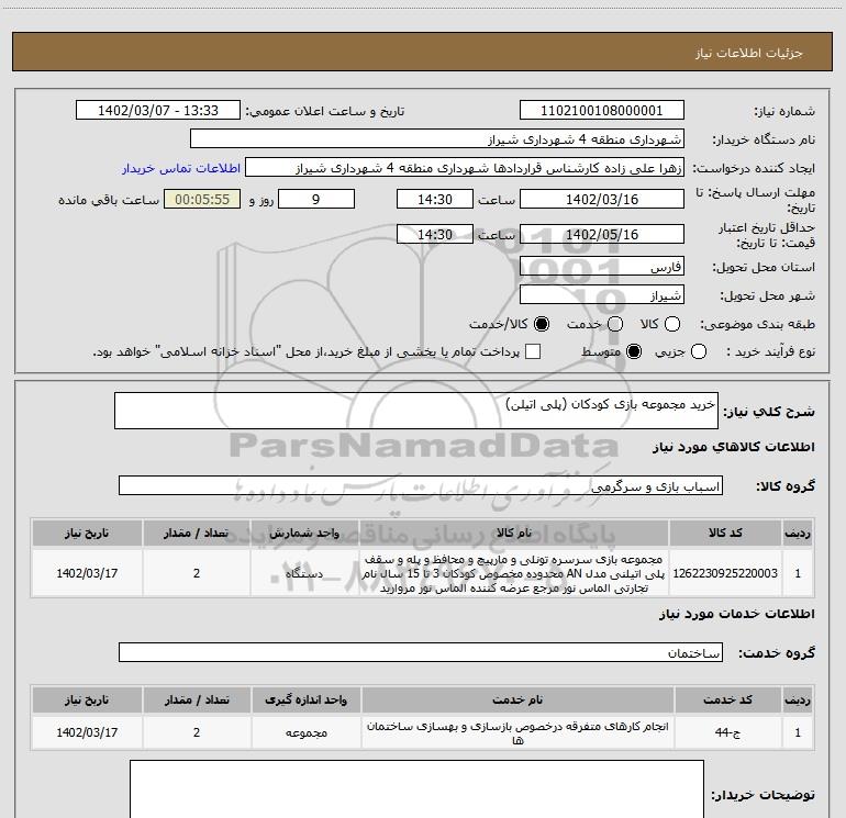 نام دستگاه خریدار:شهرداری منطقه 4 شهرداری شیراز
