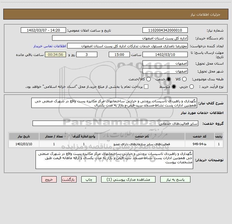 نام دستگاه خریدار:اداره کل پست استان اصفهان