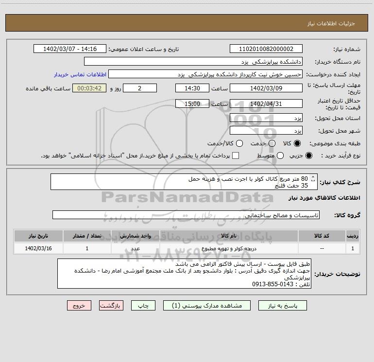 شرح کلی نیاز: 80 متر مربع کانال کولر با اجرت نصب و هزینه حمل