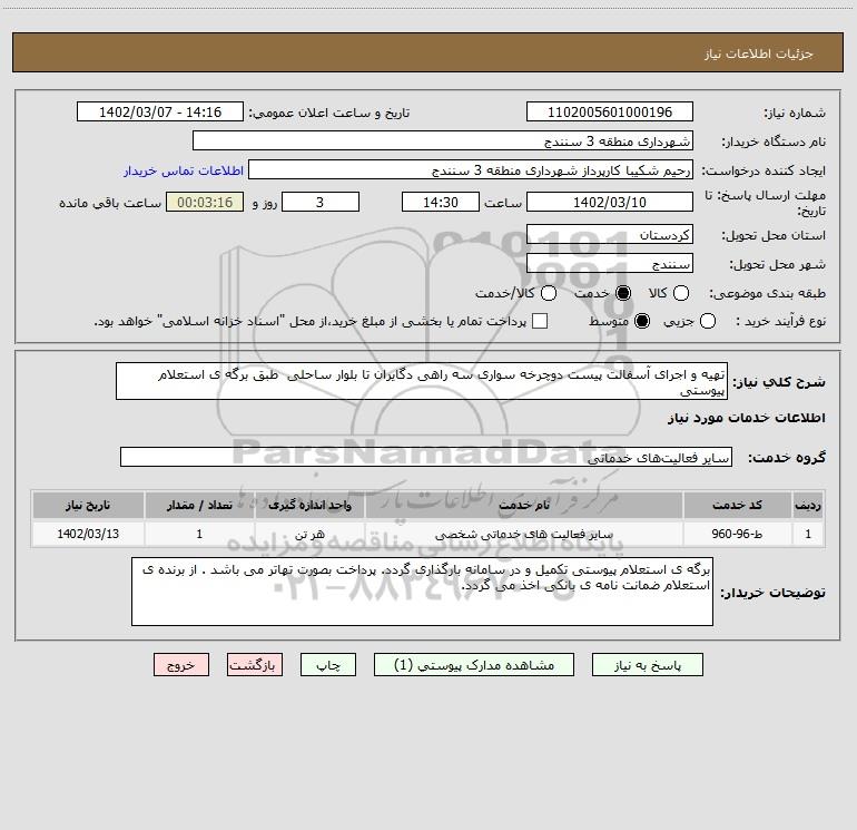نام دستگاه خریدار:شهرداری منطقه 3 سنندج